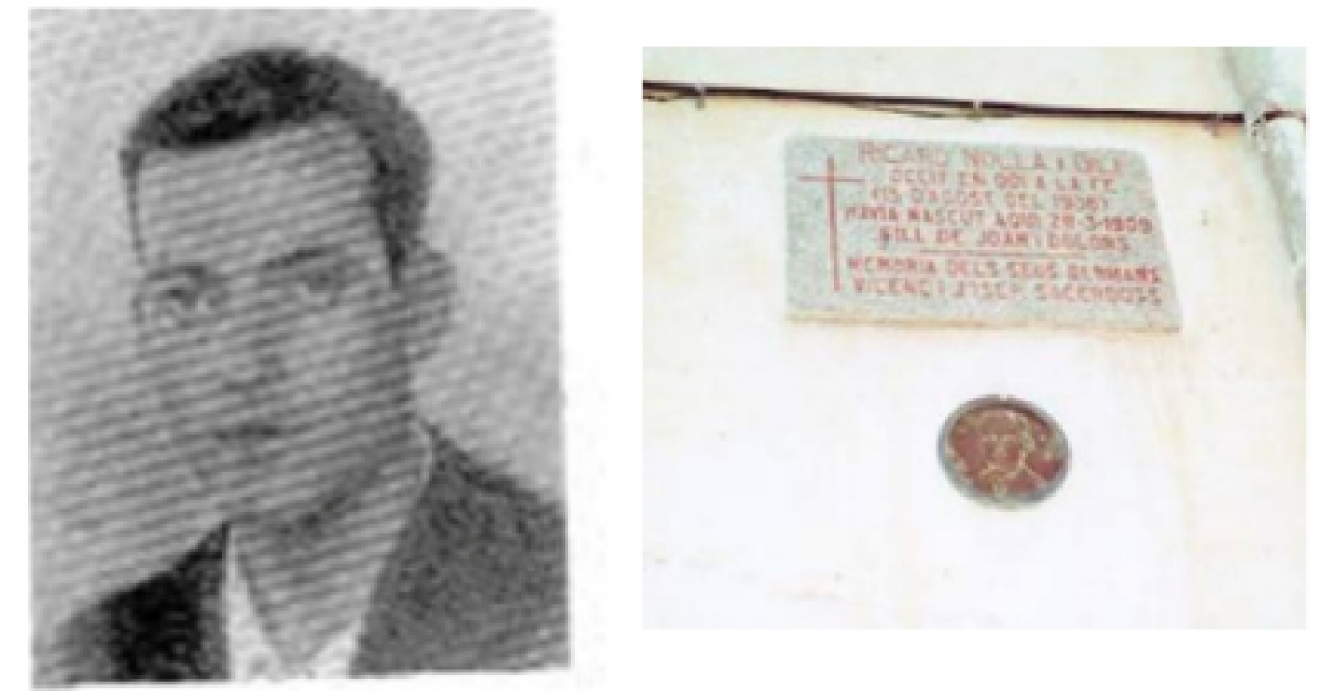 Des del Cel, amb altres joves de la FJC també matats per odi a la fe, prega i pregarà per la "Nova Catalunya Cristiana en pau i progrés" (Pres en part d'un escrit del seu germà, el canonge Rnd. Vicenç Nolla i Gili; publicat a la revista "Radar" d'octubre de 1986).